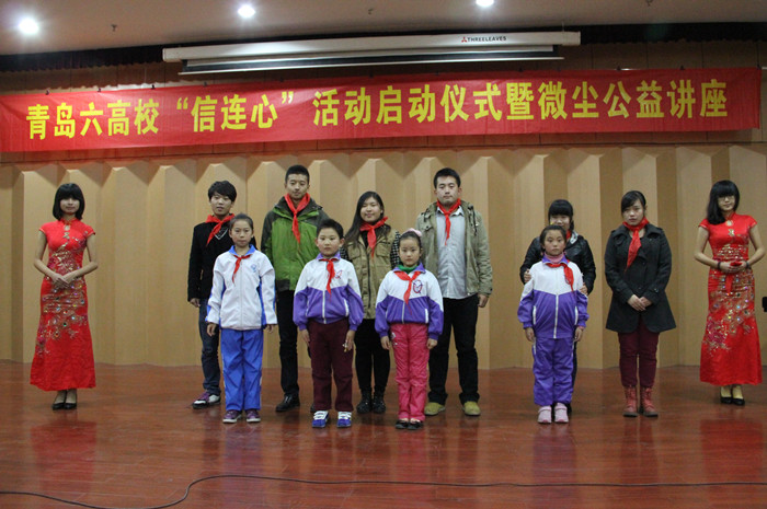 11月12日下午,由黑料网 微尘协会发起的青岛六高校“信连心”活动启动仪在崂山校区第三报告厅举行。